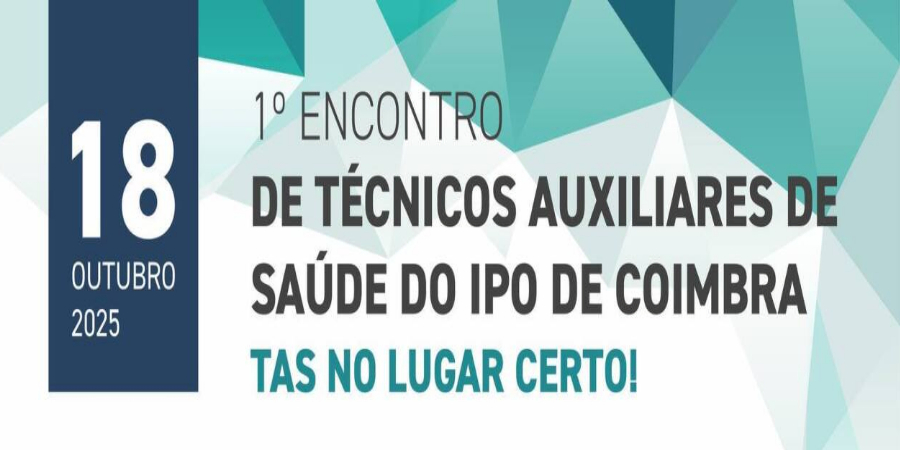Os Técnicos Auxiliares de Saúde do IPO de Coimbra vão realizar o “1º Encontro de Técnicos Auxiliares de Saúde do IPO de Coimbra – TAS no lugar certo!”, no dia 18 de outubro de 2025, destinado a Técnicos Auxiliares de Saúde, Estudantes e outros Profissionais dos Serviços de Saúde.